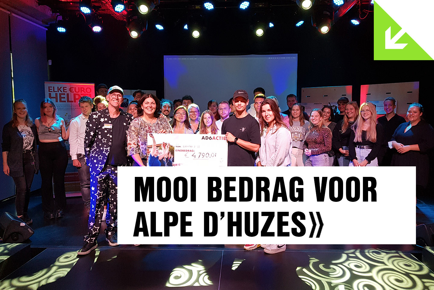 Op vrijdag 17 september hadden de studenten van podium- en evenemententechniek de ruimte in de hal van het GLR mooi uitgelicht. Bianca van Alpe d’HuZes kwam langs om de cheque in ontvangst te nemen. Robin Metselaar riep de groepjes een voor een op het podium, waarbij een vlog werd vertoond en ze het door hun opgehaalde bedrag op de cheque schreven. Best spannend!